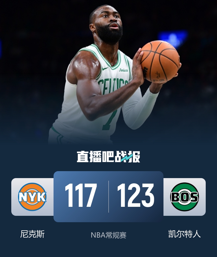 12月3日讯 NBA常规赛,凯尔特人今日迎战尼克斯,前者上场比赛险胜骑士,后者则是取得四连胜,此役阿努诺比和沙梅特缺战。